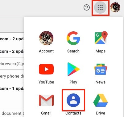 - From your Gmail inbox, click the Google apps icon (the small grid); then, click谷歌联系人.