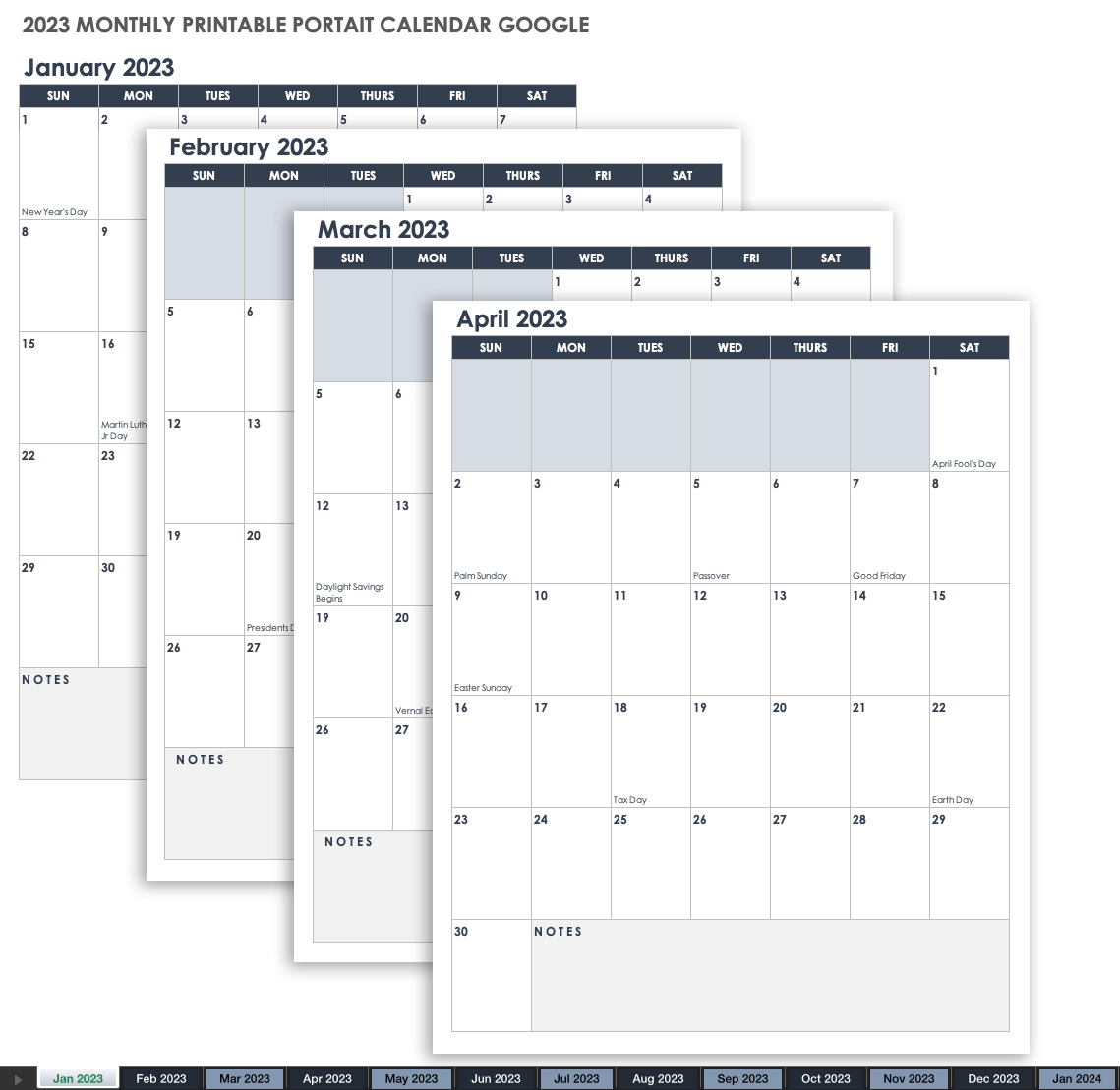 这个可打印的月度日历模板是一个伟大的解决方案,任何个人或组织需要计划每日或每月的活动,跟踪进度,或提高生产力。ob欧宝娱乐app手机下载这个模板的简单的肖像格式,确保您计划您的事件有效。该模板也可以在Google Sheets中下载,这意味着它始终可以在线共享并实时协作更新。