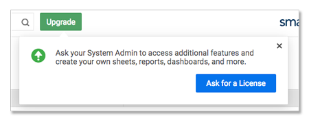 Your custom upgrade screen will appear any time anunlicensed useron your account takes an action only available to licensed users (for example, if they attempt to create a new sheet). When this occurs, Smartsheet will present the unlicensed user with the following message: