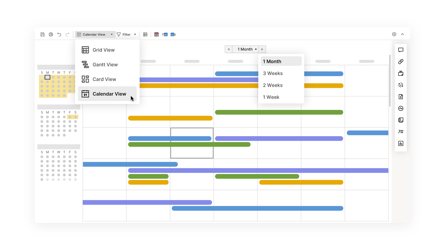 - Visualize tasks how you want by easily switching between grid, card, Gantt, and calendar views of the same data.
